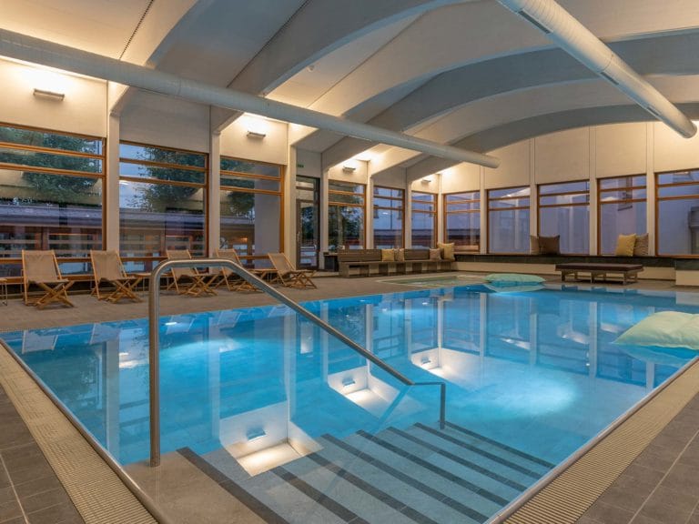 In der Lenzerheide hat das Hotel Schweizerhof die kurze Zwischensaison optimal für die Umbauarbeiten am komplett neugestalteten Hallenbad genutzt. Form und Dimension des Beckens wurden harmonisch auf die räumlichen Gegebenheiten abgestimmt. Warme Farbtöne an den Oberflächen reflektieren Kunst- und Tageslicht zu einem stimmigen Ganzen.